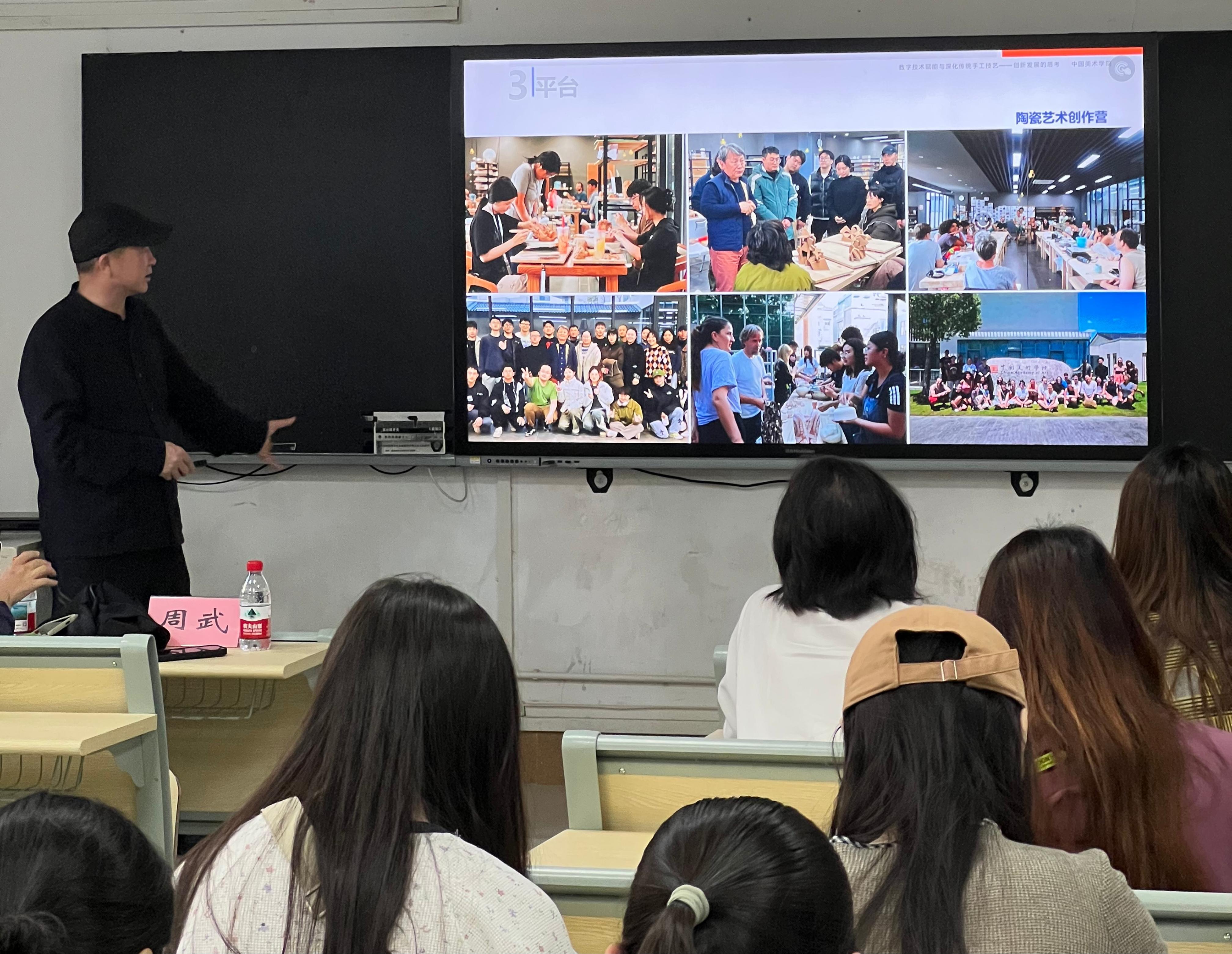 下午2时,周武教授于我院2号教学楼205教室作题为“传统手工艺的数字化传承与创新”专题讲座。讲座由我院副院长张健担任学术主持,民间艺术研究院教师林天宇主持。周武教授从“传统与数字的融合”理论切入,系统阐述数字技术如何为手工艺遗产保护与当代创新注入新动能。他指出,手工艺的当代发展须在承续文脉的基础上,积极融合数字工艺、人工智能等科技手段,实现创造性转化。通过传统窑口数字化重建、陶瓷参数化设计等实践案例,周武教授生动诠释了数字技术在非遗存续、创作思维革新与工艺教育转型中的多重价值。讲座现场呈现的一系列数字技术与陶瓷工艺深度融合的作品,展现了材料、工艺与数字智能结合所带来的艺术新形态,为我院工艺美术专业的教学与创作提供了前瞻性的跨学科参照。
