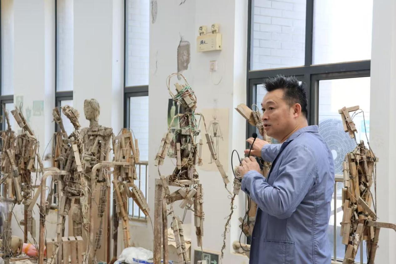 考察团一行先后走进漆艺系、雕塑系、工艺美术系,陪同教授们结合专业实践,细致讲解了漆艺的传承脉络与当代创新探索,深入解读了雕塑创作中的工艺技法与材料运用要点。考察团走进工艺美术系工作室,切身感受工艺美术创作的浓厚氛围,近距离观摩艺术创作过程,直观体会匠心精神。随后,大家前往图展中心,系统了解学院丰富的馆藏资源,感受学院深厚的文化积淀。