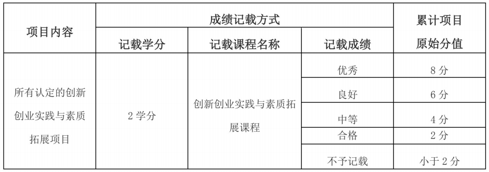 四、创新创业实践与素质拓展学分与成绩记载方式