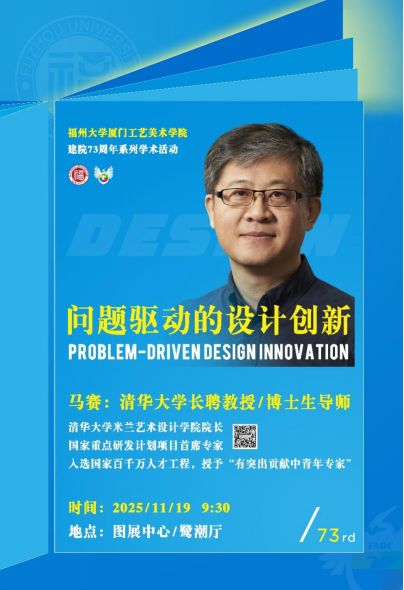 为庆祝福州大学厦门工艺美术学院建院73周年,2025年11月19日,清华大学长聘教授、博士生导师马赛教授应邀来院开展学术讲座与交流。