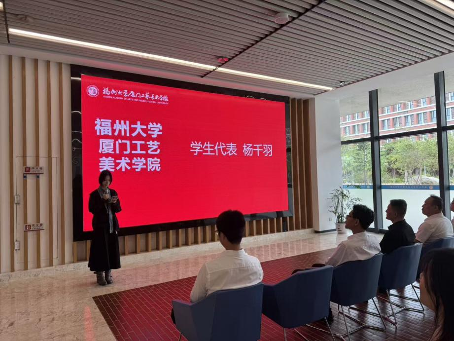 学生代表杨千羽同学表示,感谢晋江校区提供良好学习氛围,感谢七匹狼集团提供的优质实践面料,感谢老师们的辛苦付出,也感谢身边并肩作战的同学。